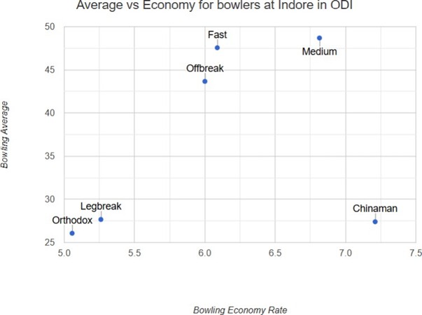 Left-arm orthodox spinners and wrist-spinners have been the most effective bowling types at this venue, while fast bowlers have struggled both to contain runs and take wickets.