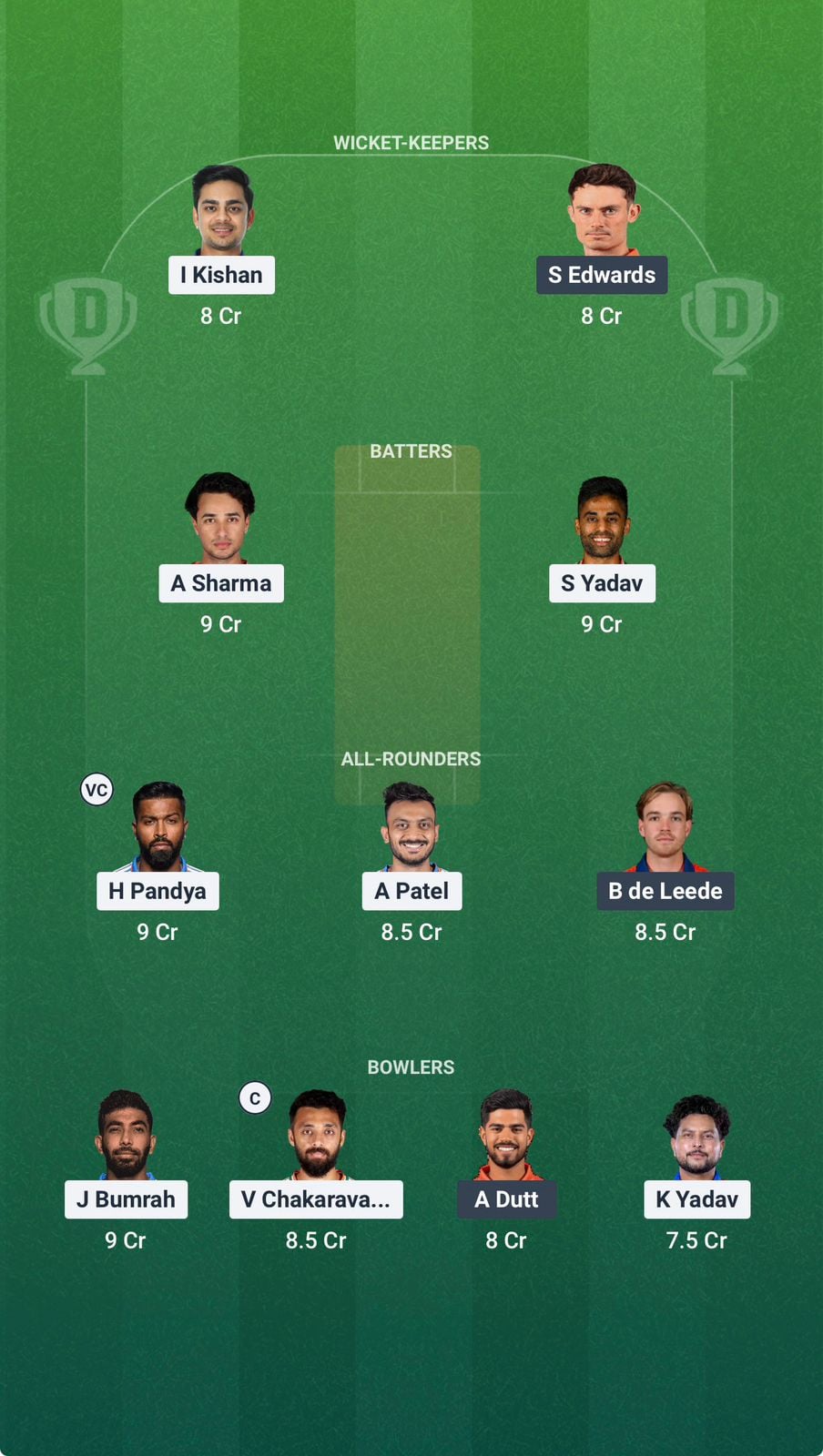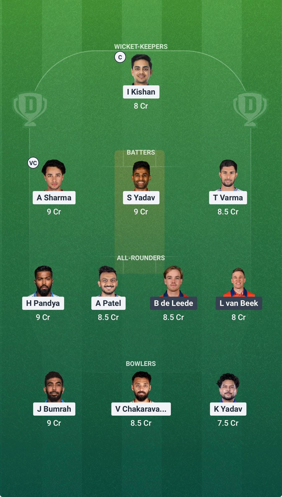 Jasprit Bumrah was in excellent rhythm in the last game. He swung the new ball and was very sharp, especially in the powerplay. He can trouble the Dutch batters and will be a good C/VC option too.