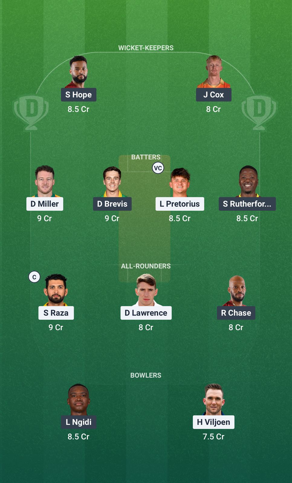 - Quinton de Kock scored 79* in the last game against the Pretoria Capitals. He, alongside Jonny Bairstow, saw his side over the line. De Kock has 205 runs in four innings at an average of 68.33 at a strike rate of 173.73, including two fifties. He will be another top C/VC choice.