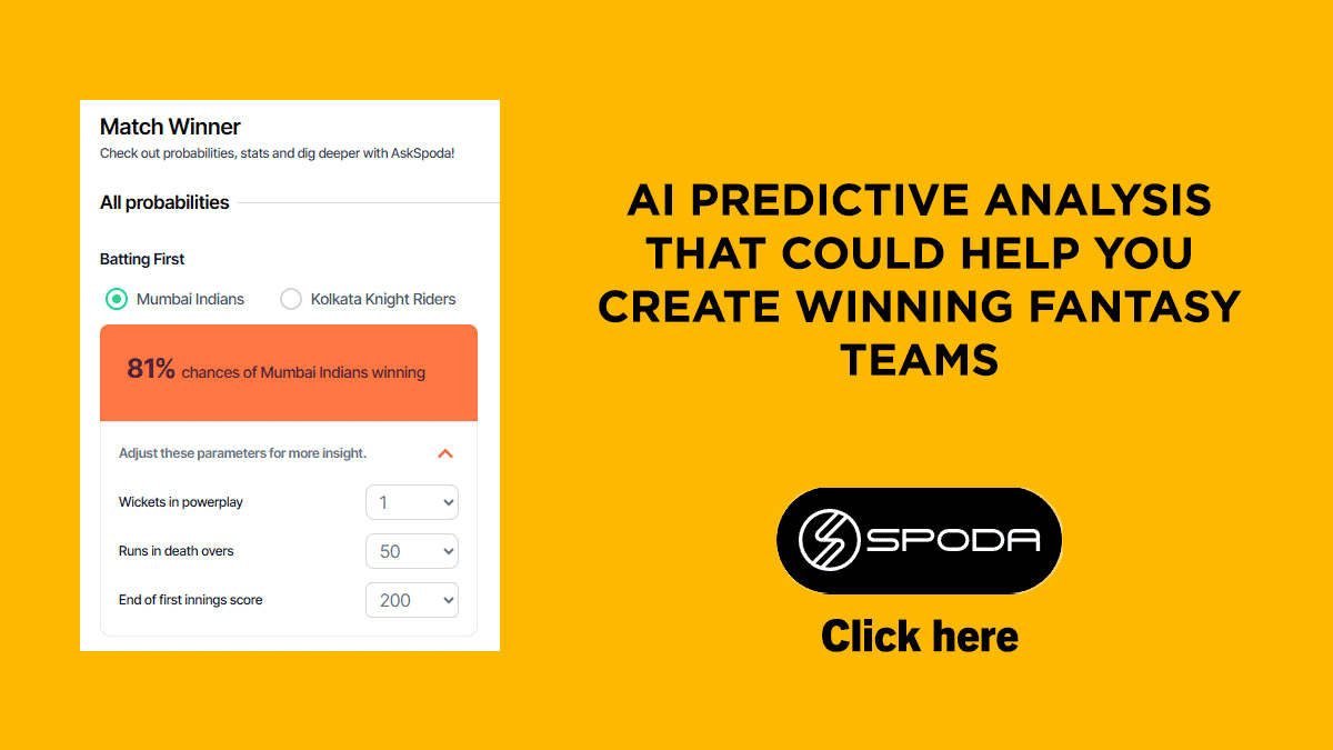 For predictive analysis that could help guide you in creating your fantasy cricket teams, check out SPODA AI (AI Cricket Prediction & Match Analysis Tool) below.If you sign up, you will receive 3 FREE match passes to start.